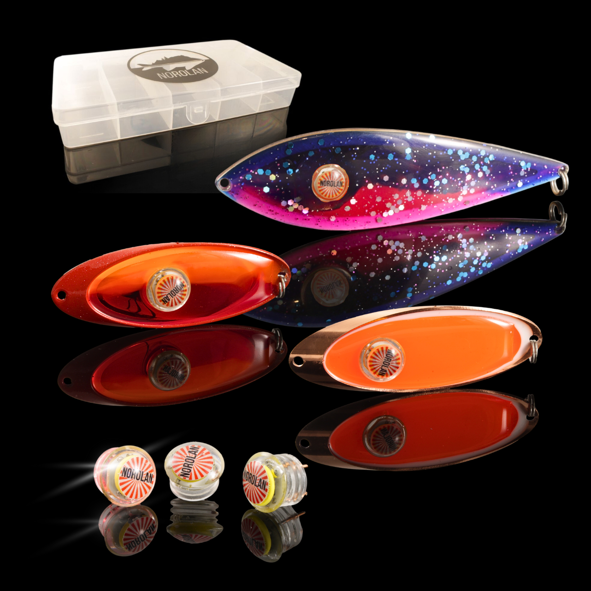 Fargekartet for blinkene er utviklet i samarbeid med Rödingfrossa. Fordi Norolan lager blinkene for hånd i Finland, har man kunnet skape helt unike fargekombinasjoner som masseproduserte produkter bare kan drømme om.
